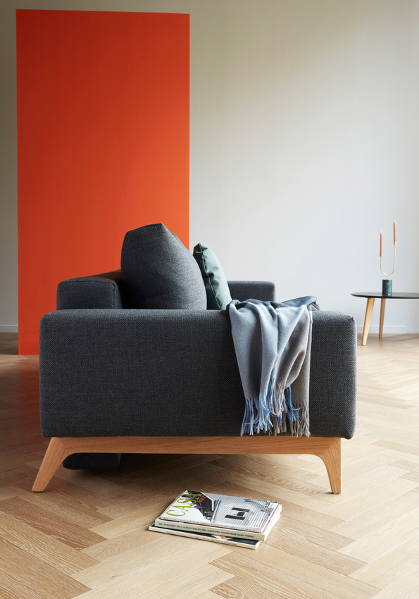 Das Sofa Idun (baugleich zum Modell Trym aber mit Armlehnen) erscheint schlicht und klassisch. Lose Rückenkissen, das Fußgestell in Eiche massiv und die breiten Armlehnen prägen das Erscheinungsbild. Ein Stauraum im Gestell ist vorhanden, optional kann auch die Nacken-/Kopfstütze bestellt werden. Exzellenten Komfort bietet wie gewohnt die ISTYLE Taschenfederkern-Matratze – Liegefläche ca. 140 x 200 cm .